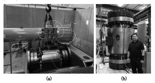In the test, it was found that when the flange with a spiral wound gasket sealing structure is adopted (Figure 2a); the top cylinder type compress can assist with the sealing of the middle flange. It did not leak for the first test. After the axial force is not applied, the screws of middle flanges will loosen; the flange will leak when tested again.