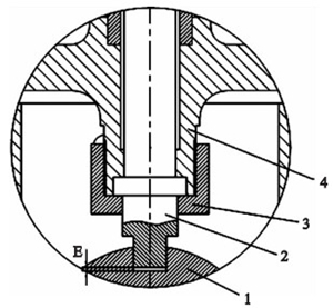 The anti-high-temperature blocking structure of the valve stem and the ball is shown in Figure 3. Since the valve is in an ultra-high temperature working condition, in order to prevent failures due to the high-temperature oxidation of the valve stem packing, an extension stem is adopted. However, because the valve stem is too long, the packing part stretches the valve stem toward the sphere due to the pressing force. The valve stem expands greatly at high temperatures due to the temperature rise, resulting in the sphere being stuck and not being unable to be opened and closed normally. Therefore, design a limit nut, screw the limit nut to the protrusion of the bonnet, and make the high-temperature elongation of the valve stem towards the packing and worm gear. The distance between the lower end of the limit nut and the sphere is very short, and the elongation of the valve stem is very small at high temperatures. By designing the gap E between the valve stem and the sphere, E is smaller than the elongation ΔL of the valve's limit operating temperature, effectively ensuring that it is not affected by the high temperature. The limit nut is also the limit component that effectively guarantees the gap E. The special limit nut structure effectively avoids the blocking of the valve in the axial direction of the valve stem, ensuring that it can be opened or closed flexibly and lightly under ultra-high temperatures.